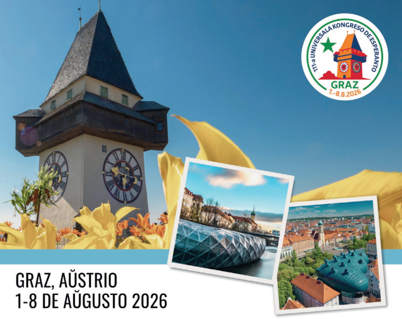 Mi ne supozas, ke vi ne scias, pri kio temas ĉi tiu afiŝo. Do ĉi tiu artikolo estas nur memorigilo, ke 111-a Universala Kongreso de Esperanto okazos ĉi-jare en Graz, Aŭstrio, de la 1-a ĝis la 8-a de aŭgusto.